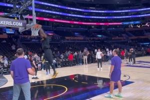41岁老头的生涯第23赛季!詹姆斯赛前热身身轻如燕 拿球就扣